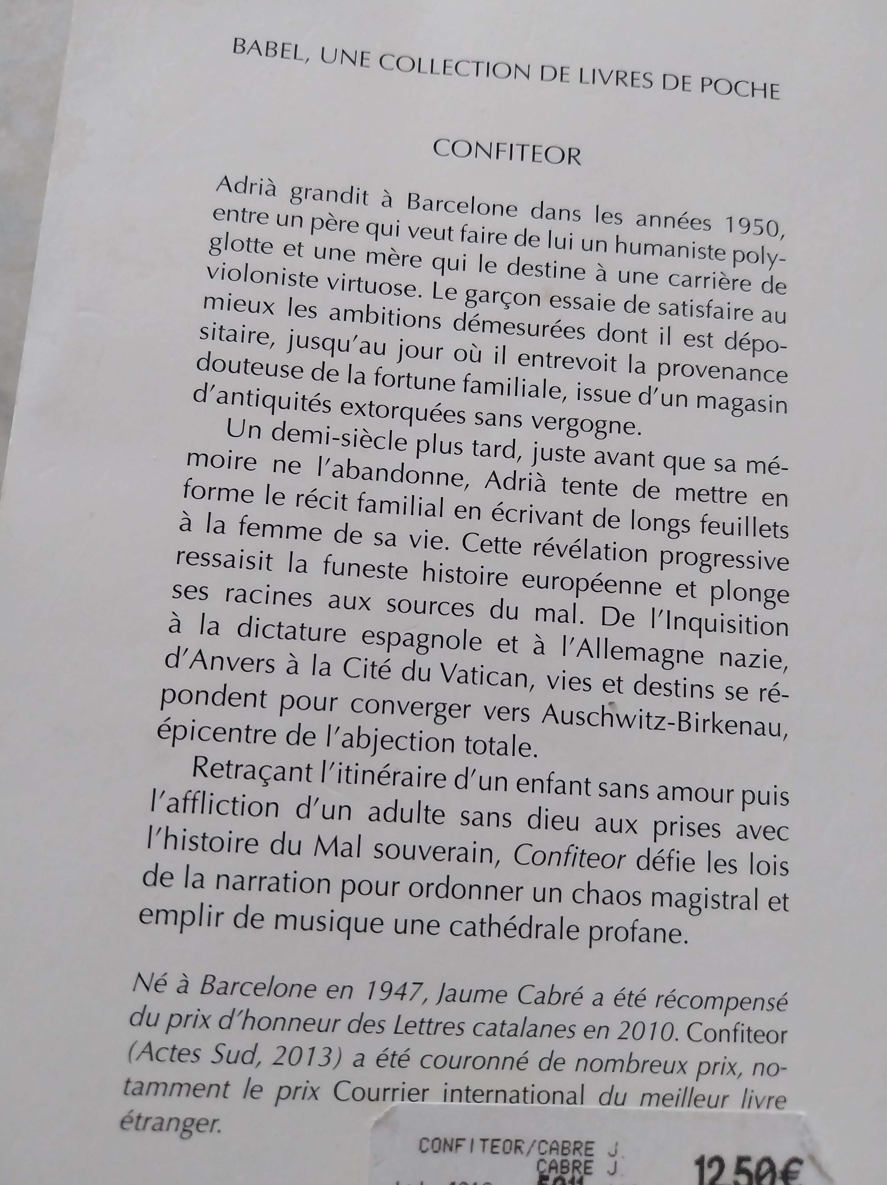 Attention : ce roman défie toutes les règles de narration, mêlant les époques et les personnages dans le même paragraphe, souvent en plein milieu d’une phrase ou même d’un dialogue. C’est à s’y perdre, à s’arracher les cheveux, à revenir maintes fois en arrière, à se dire que l’on ne comprend vraiment rien. Le début de la lecture peut vraiment remettre en doute nos capacités intellectuelles, puis avec un peu de patience et d’obstination, on finit par assimiler la mécanique de narration de l’auteur, qui au long de son récit tel le petit Poucet nous sème des petits cailloux, un indice par-ci, un lieu ou un personnage par-là, pour ne pas nous perdre, dans les dédales de la mémoire de son héros. Puis les informations s’emboîtent comme dans un puzzle et là on ne peut qu’être fasciné par le récit des mémoires d’Adria et par l’immense travail d’écriture de Jaume Cabré.