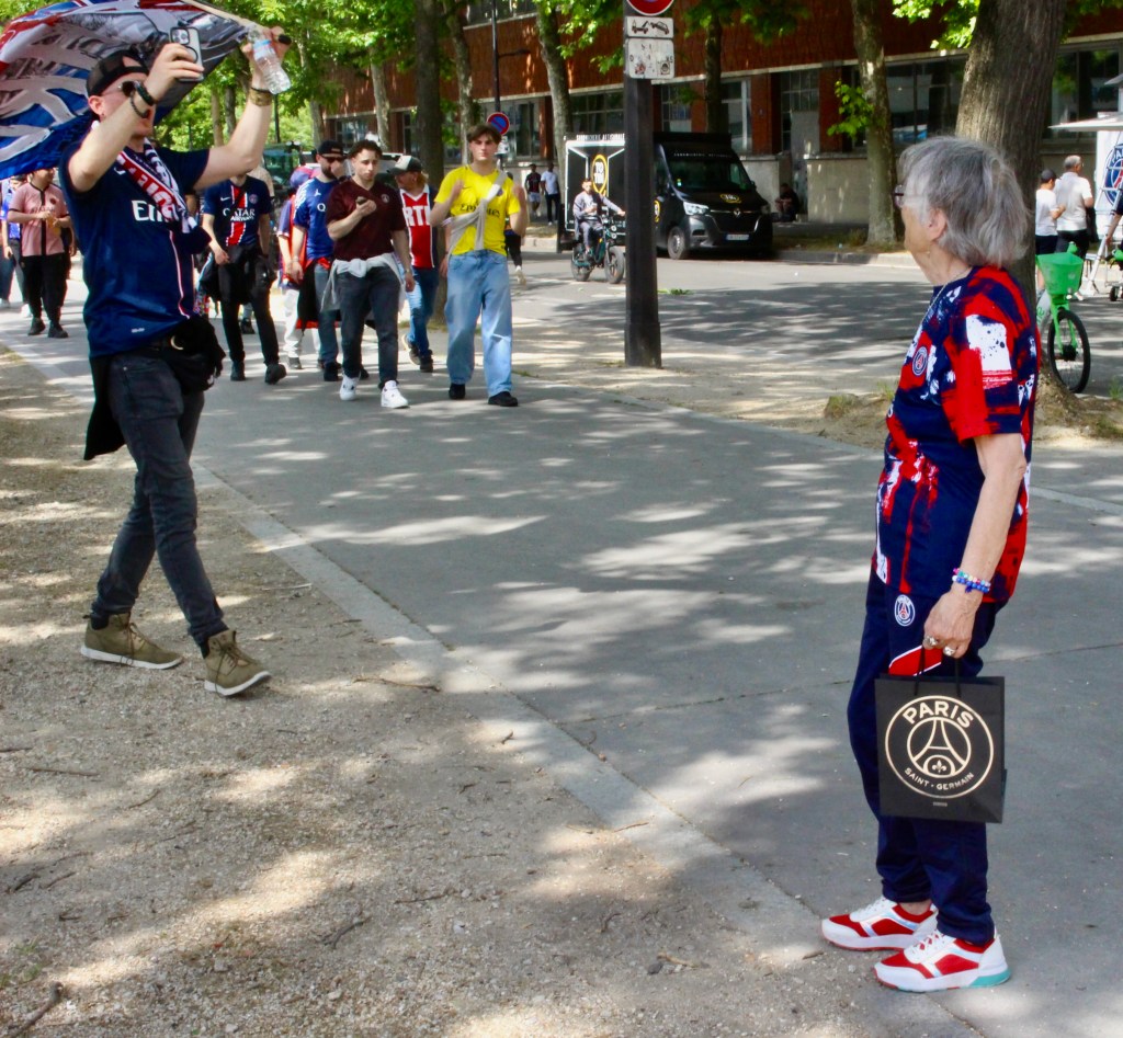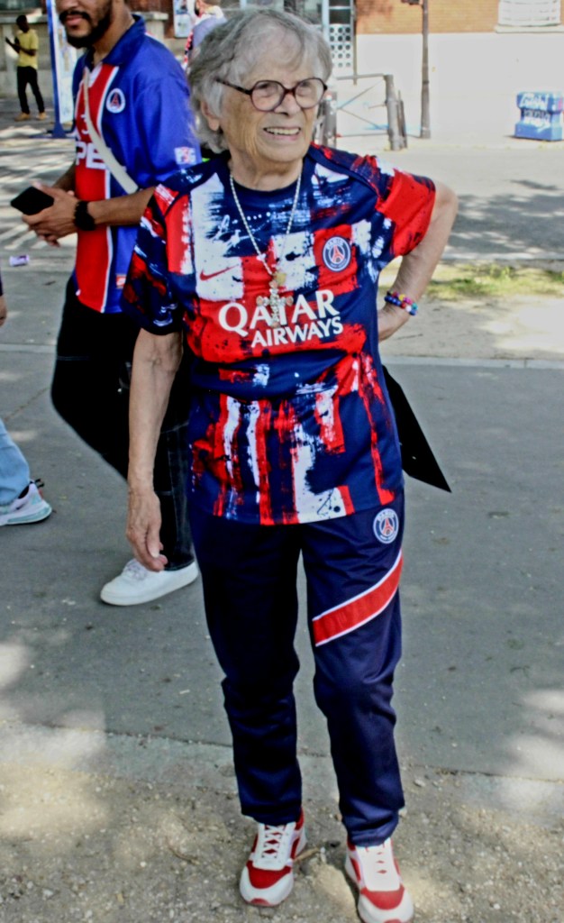 Je ne retiens que les sourires, les larmes de joie et ces moments de ferveur partagée. Je me souviens surtout de Josette, 89 ans, que j’ai photographiée avant le match (ci-dessus), abonnée depuis toujours, qui a enfin vu la coupe aux grandes oreilles à la maison, au Parc de Princes… J’aurai tant aimé la revoir après le match et la serrer dans mes bras.