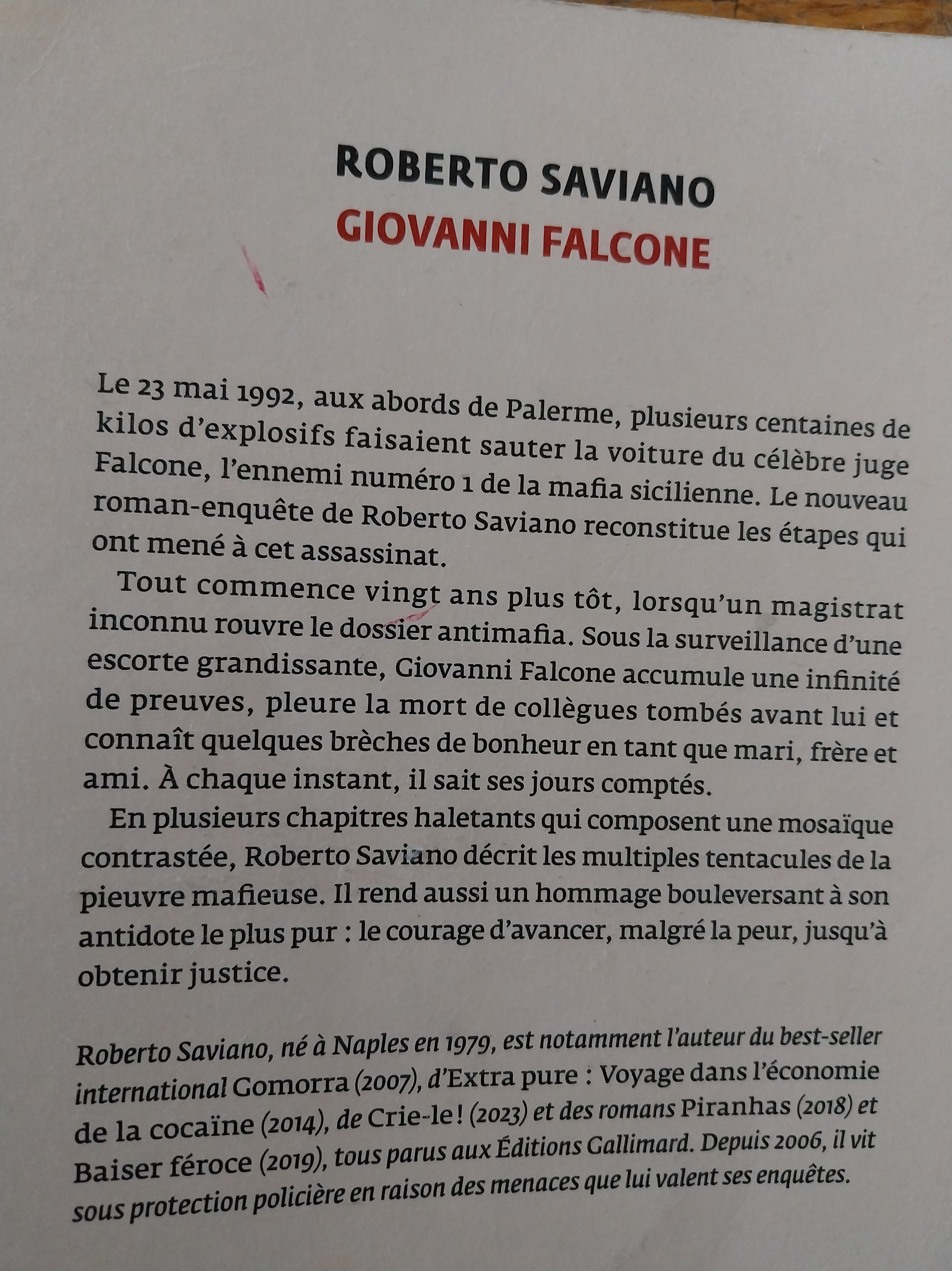 Le 23 mai 1992, à 17 h 56 et 48 secondes, aux abords de Palerme, plusieurs centaines de kilos d’explosifs pulvérisent la voiture du célèbre juge Giovanni Falcone, ennemi public numéro un de la mafia sicilienne. L’histoire, on la connaît et pourtant, Roberto Saviano nous livre un roman passionnant, reconstituant avec une précision implacable les étapes qui ont conduit à cet assassinat.